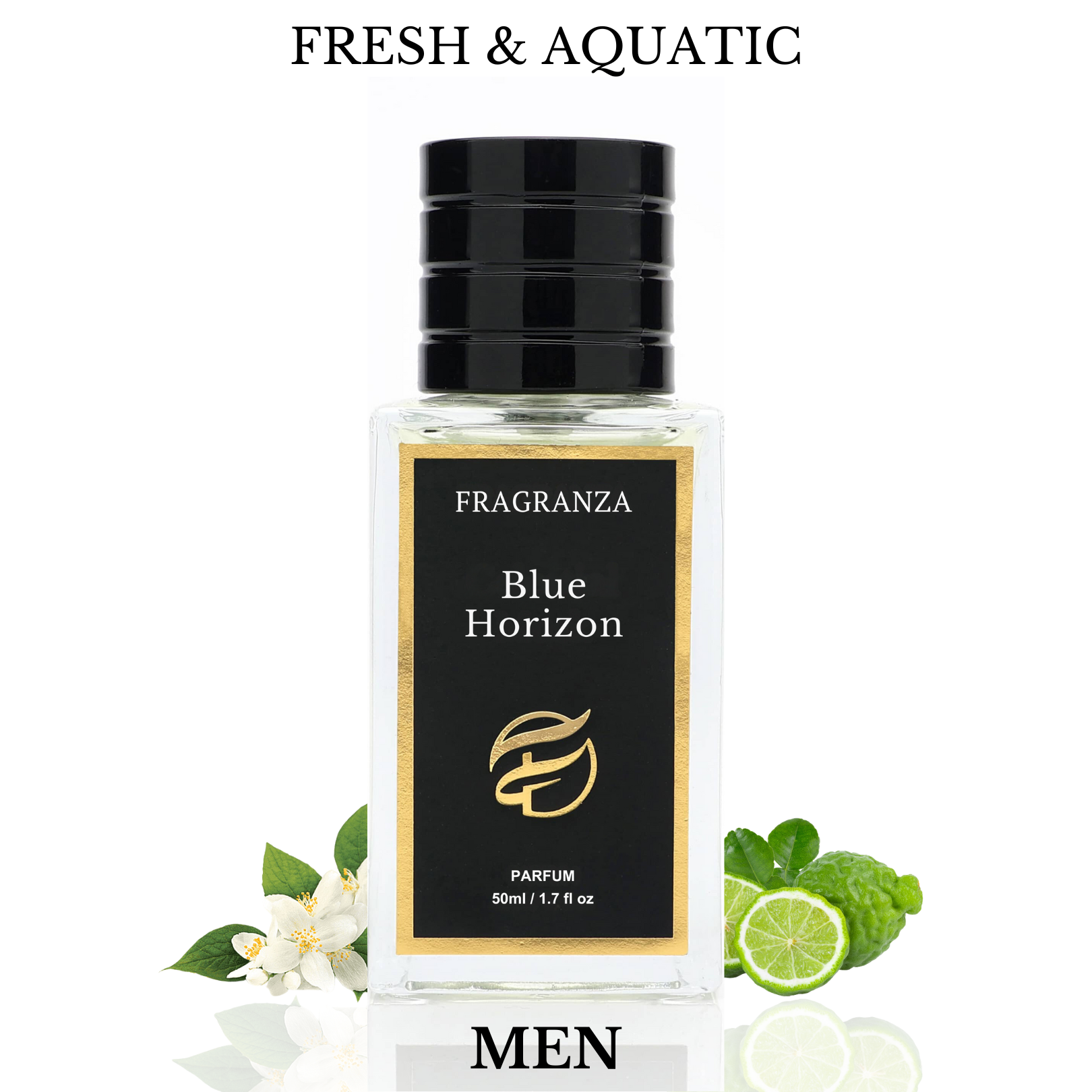 Blue Horizon is an invigorating fragrance that opens with a bright burst of citrus notes, including zesty bergamot and juicy mandarin, evoking the essence of sunlit shores. The heart features a harmonious blend of aromatic sea notes and floral hints of jasmine, creating a breezy and uplifting experience. As the fragrance unfolds, the base notes of warm cedarwood and soft musk emerge, providing a tranquil and lasting impression reminiscent of endless horizons.