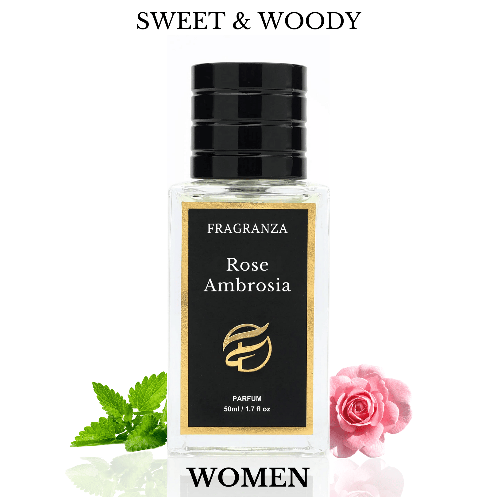 Rose Ambrosia is a luxurious and enchanting fragrance that begins with a vibrant burst of fresh blackcurrant and zesty bergamot, creating an exhilarating and sophisticated opening. The heart reveals a lush blend of romantic rose and smooth vanilla, adding an air of elegance and depth. The fragrance settles into a warm, velvety base of amber and subtle patchouli, leaving a lasting and irresistible impression.